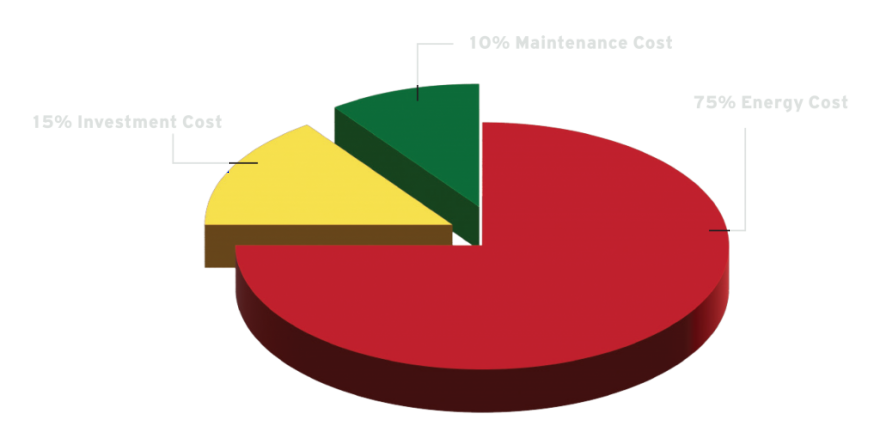 Έρευνες σε βιομηχανίες σε όλο τον κόσμο έχουν δείξει ότι η ενέργεια είναι το μεγαλύτερο κόστος που σχετίζεται με τον πεπιεσμένο αέρα, ίσο με το 75% του συνολικού κόστους κτήσης ενός τυπικού κοχλιοφόρου αεροσυμπιεστή